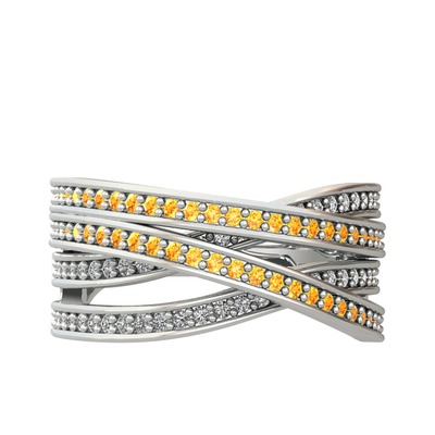 Sitrin ve pırlanta 925 ayar gümüş yüzük (0.484 karat)