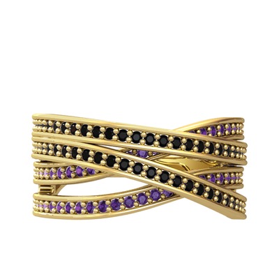 Siyah zirkon ve ametist 8 ayar altın yüzük