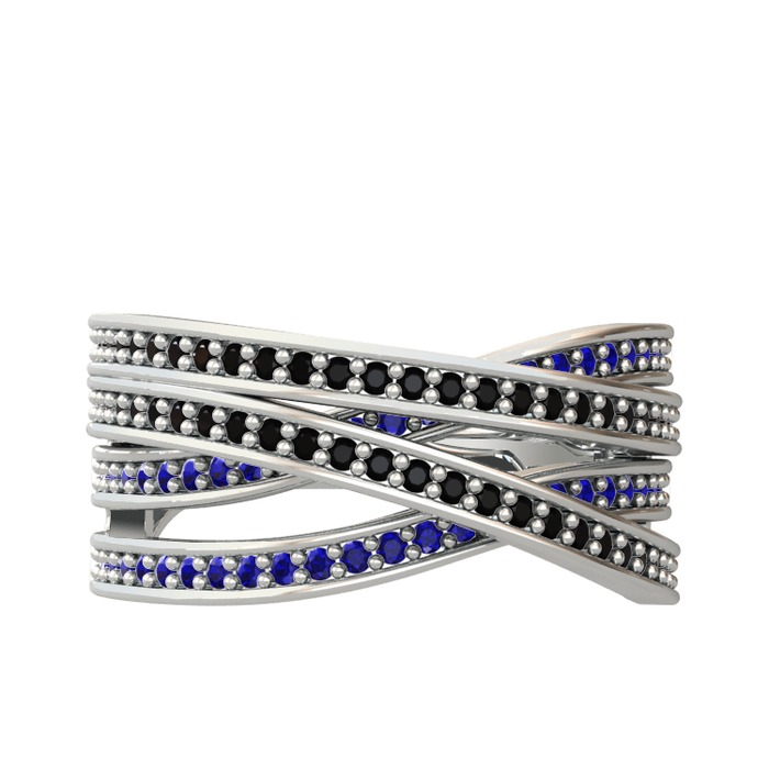 Siyah zirkon ve lab safir 14 ayar beyaz altın yüzük