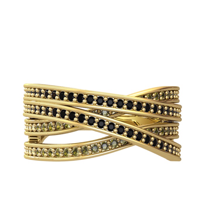 Siyah zirkon ve peridot 18 ayar altın yüzük