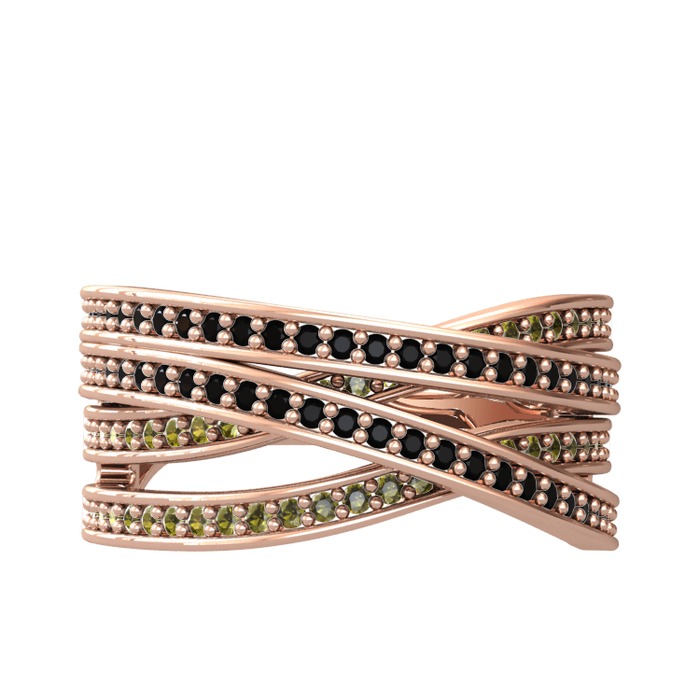 Siyah zirkon ve peridot 8 ayar rose altın yüzük