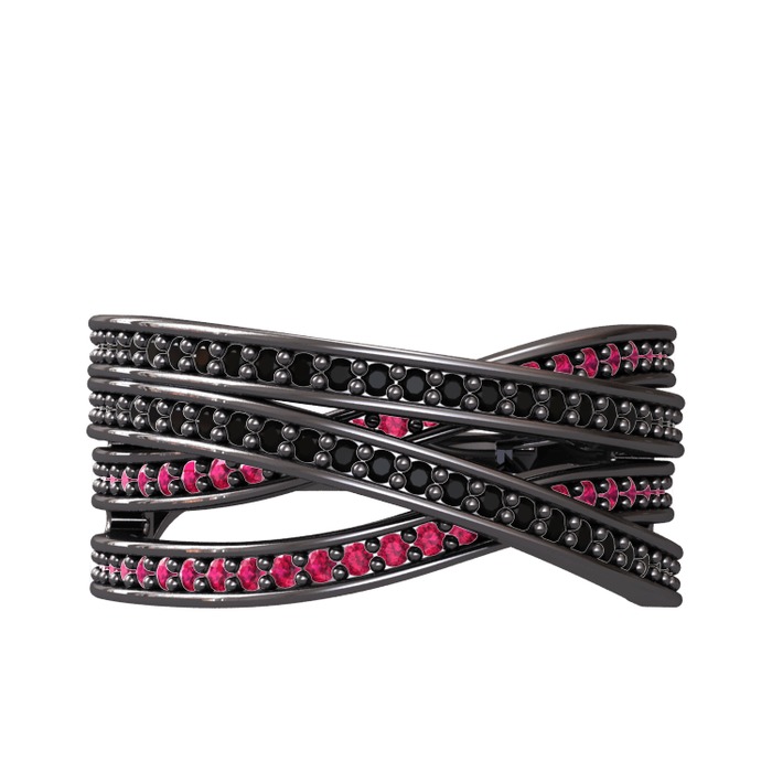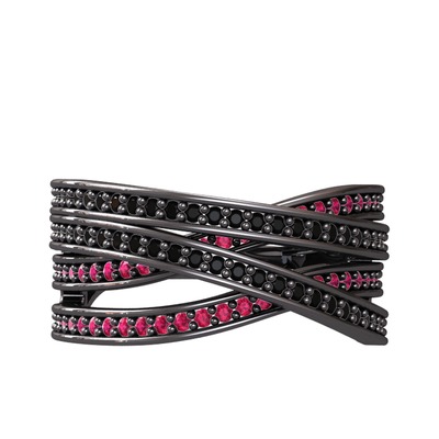 Siyah zirkon ve rodolit garnet 925 ayar siyah rodyum kaplama gümüş yüzük