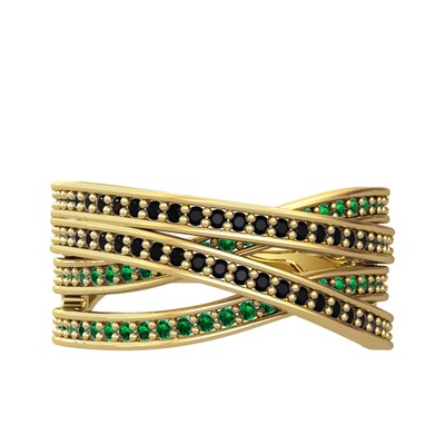 Siyah zirkon ve yeşil kuvars 925 ayar altın kaplama gümüş yüzük