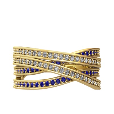 Swarovski ve lab safir 14 ayar altın yüzük