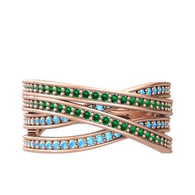 Yeşil kuvars ve akuamarin 925 ayar rose altın kaplama gümüş yüzük