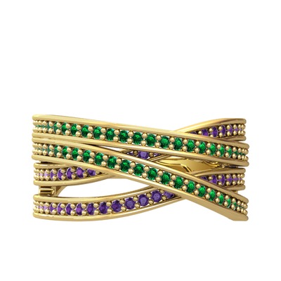 Yeşil kuvars ve ametist 925 ayar altın kaplama gümüş yüzük
