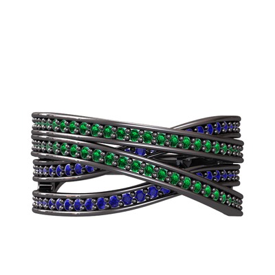 Yeşil kuvars ve lab safir 925 ayar siyah rodyum kaplama gümüş yüzük