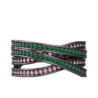 Yeşil kuvars ve pembe kuvars 925 ayar siyah rodyum kaplama gümüş yüzük