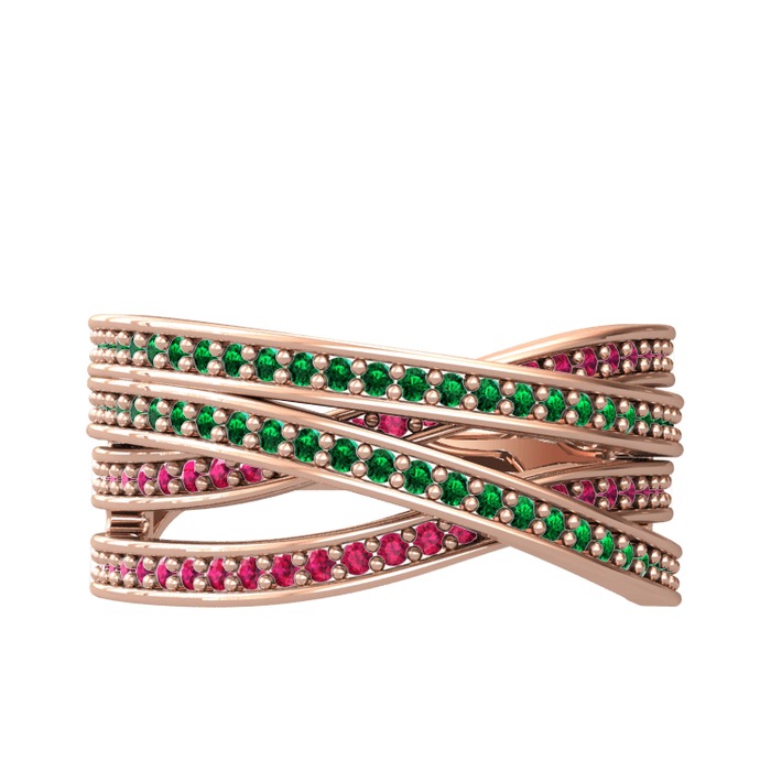 Yeşil kuvars ve rodolit garnet 925 ayar rose altın kaplama gümüş yüzük