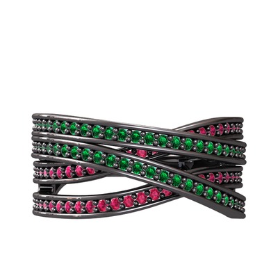 Yeşil kuvars ve rodolit garnet 925 ayar siyah rodyum kaplama gümüş yüzük