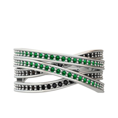 Yeşil kuvars ve siyah zirkon 18 ayar beyaz altın yüzük
