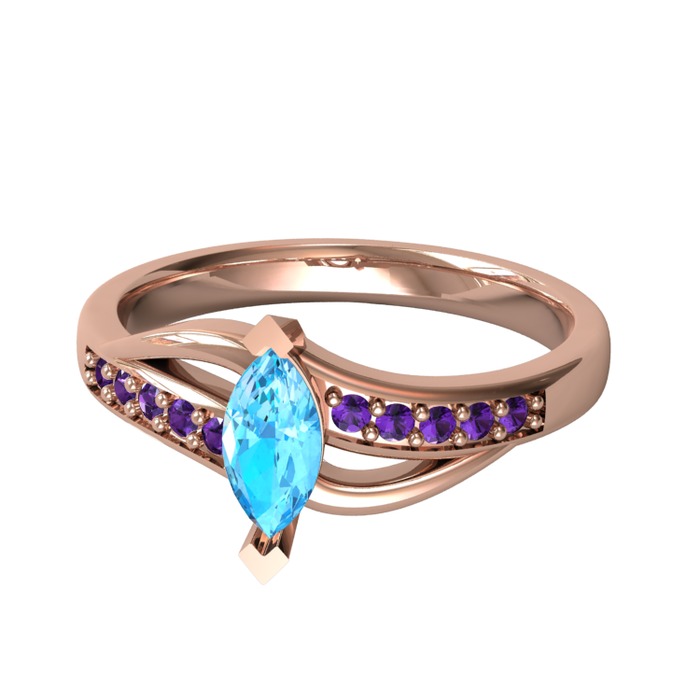 Akuamarin ve ametist 8 ayar rose altın yüzük