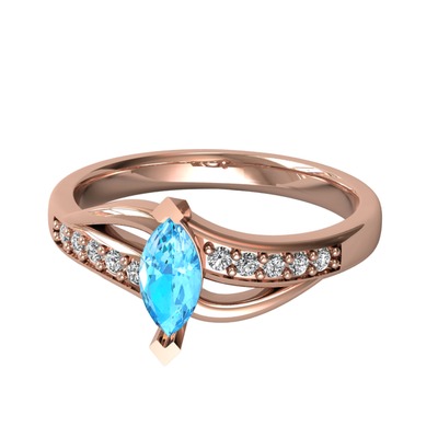 Akuamarin ve beyaz zirkon 14 ayar rose altın yüzük