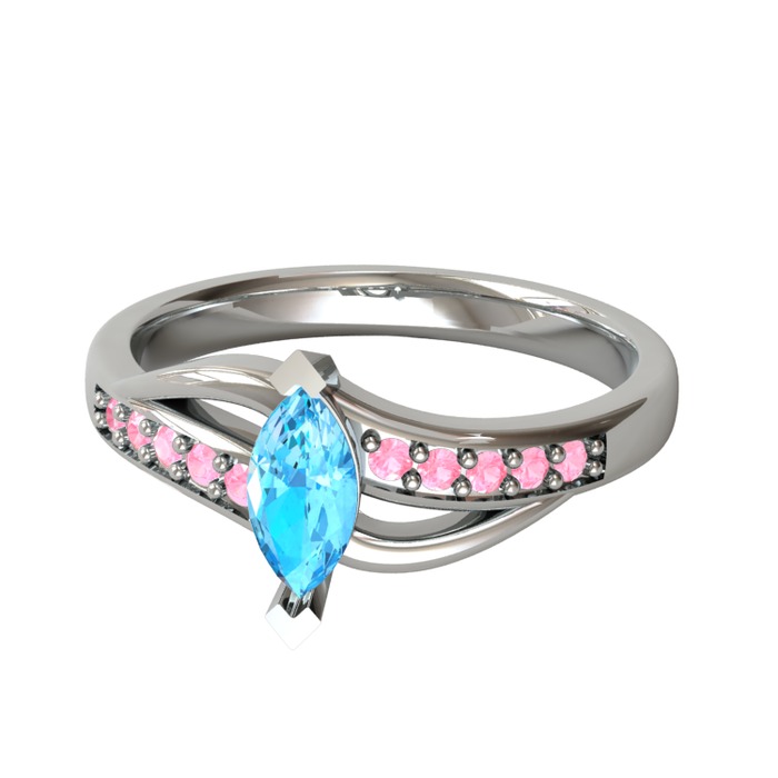 Akuamarin ve pembe kuvars 8 ayar beyaz altın yüzük