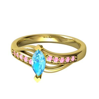 Akuamarin ve pembe kuvars 925 ayar altın kaplama gümüş yüzük
