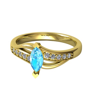 Akuamarin ve pırlanta 8 ayar altın yüzük (0.15 karat)