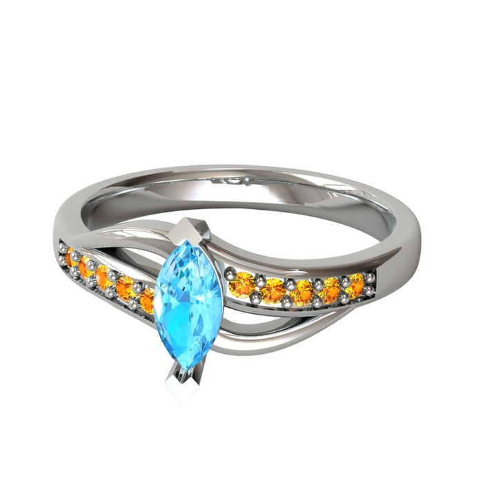 Akuamarin ve sitrin 8 ayar beyaz altın yüzük