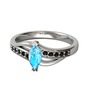 Akuamarin ve siyah zirkon 14 ayar beyaz altın yüzük