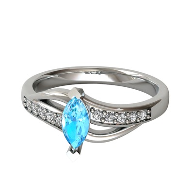 Akuamarin ve swarovski 14 ayar beyaz altın yüzük