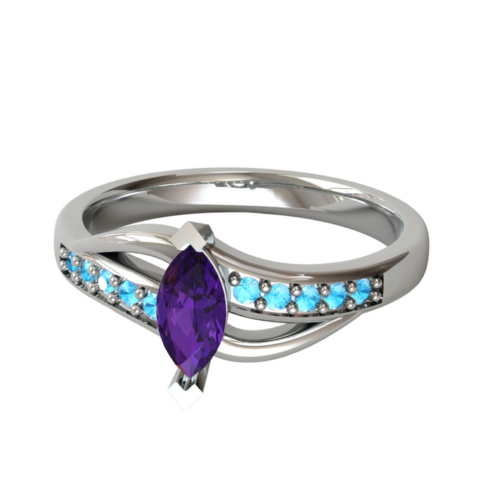 Ametist ve akuamarin 8 ayar beyaz altın yüzük
