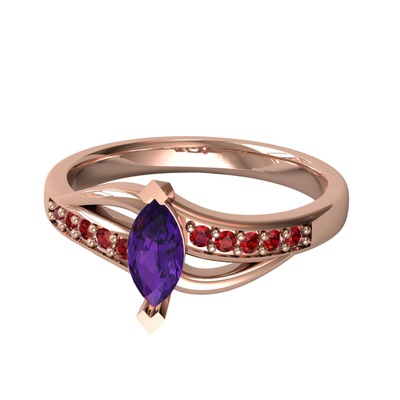 Ametist ve garnet 18 ayar rose altın yüzük