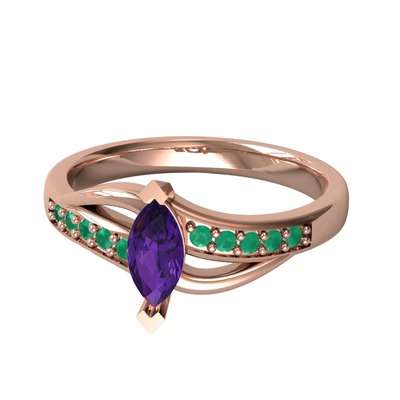 Ametist ve kök zümrüt 8 ayar rose altın yüzük