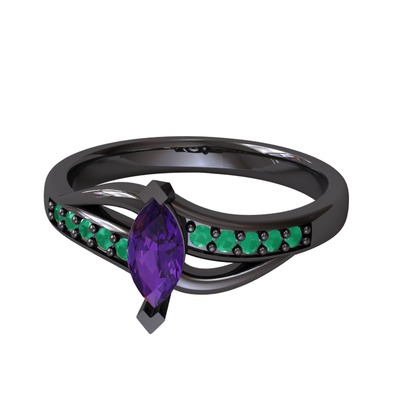 Ametist ve kök zümrüt 925 ayar siyah rodyum kaplama gümüş yüzük