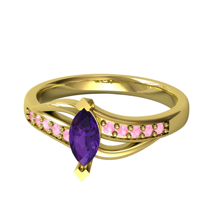 Ametist ve pembe kuvars 8 ayar altın yüzük