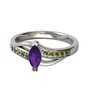 Ametist ve peridot 14 ayar beyaz altın yüzük