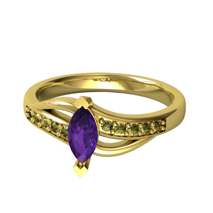 Ametist ve peridot 925 ayar altın kaplama gümüş yüzük