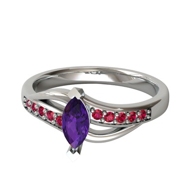 Ametist ve rodolit garnet 8 ayar beyaz altın yüzük