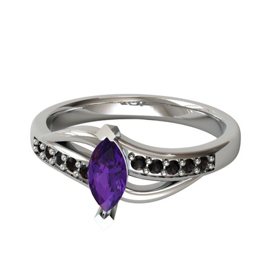 Ametist ve siyah zirkon 14 ayar beyaz altın yüzük