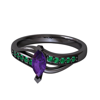Ametist ve yeşil kuvars 925 ayar siyah rodyum kaplama gümüş yüzük