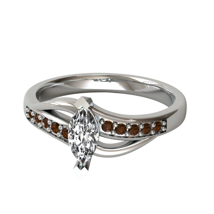 Beyaz zirkon ve dumanlı kuvars 14 ayar beyaz altın yüzük
