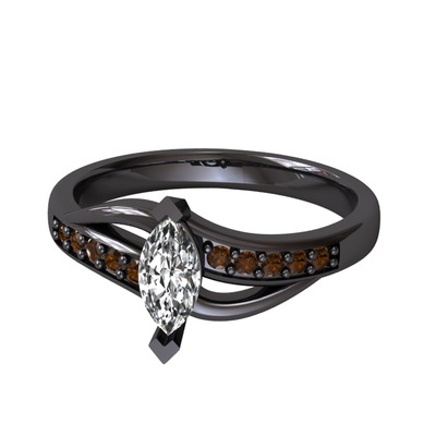 Beyaz zirkon ve dumanlı kuvars 925 ayar siyah rodyum kaplama gümüş yüzük