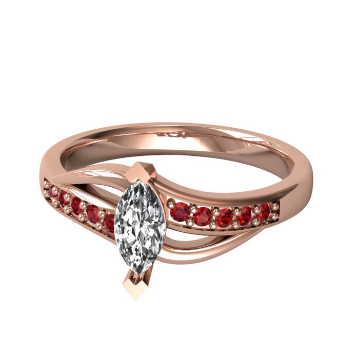 Beyaz zirkon ve garnet 14 ayar rose altın yüzük