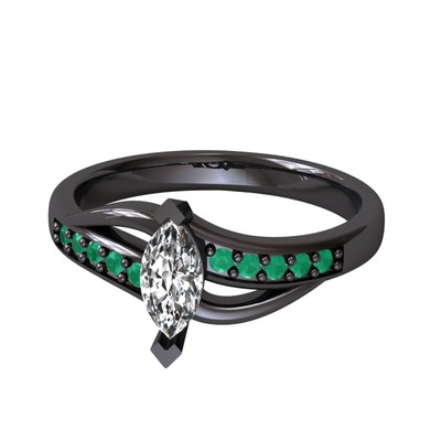 Beyaz zirkon ve kök zümrüt 925 ayar siyah rodyum kaplama gümüş yüzük