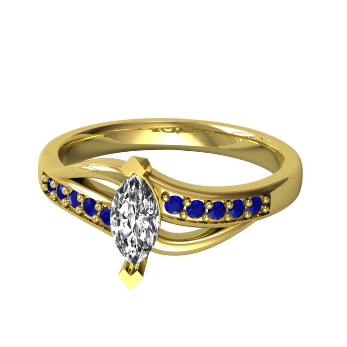 Beyaz zirkon ve lab safir 8 ayar altın yüzük