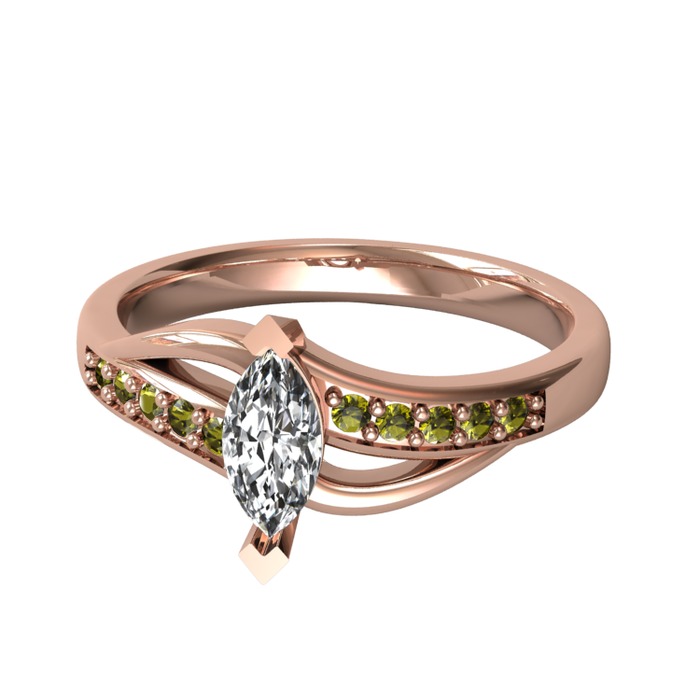 Beyaz zirkon ve peridot 8 ayar rose altın yüzük