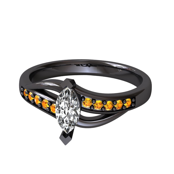 Beyaz zirkon ve sitrin 925 ayar siyah rodyum kaplama gümüş yüzük