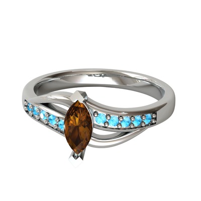 Dumanlı kuvars ve akuamarin 14 ayar beyaz altın yüzük