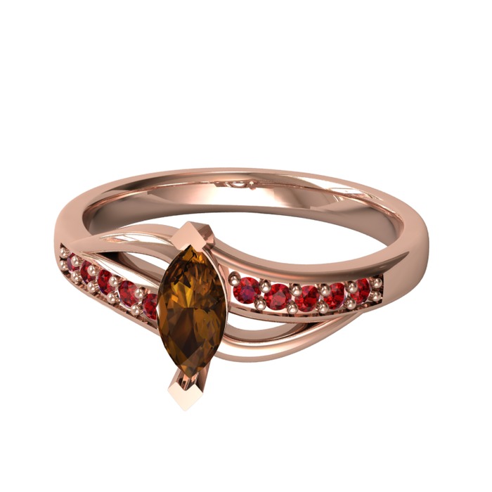 Dumanlı kuvars ve garnet 925 ayar rose altın kaplama gümüş yüzük