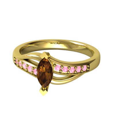 Dumanlı kuvars ve pembe kuvars 8 ayar altın yüzük