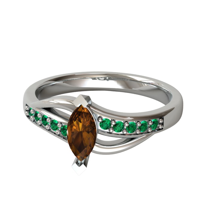 Dumanlı kuvars ve yeşil kuvars 14 ayar beyaz altın yüzük