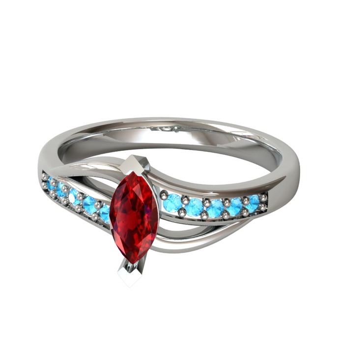 Garnet ve akuamarin 8 ayar beyaz altın yüzük