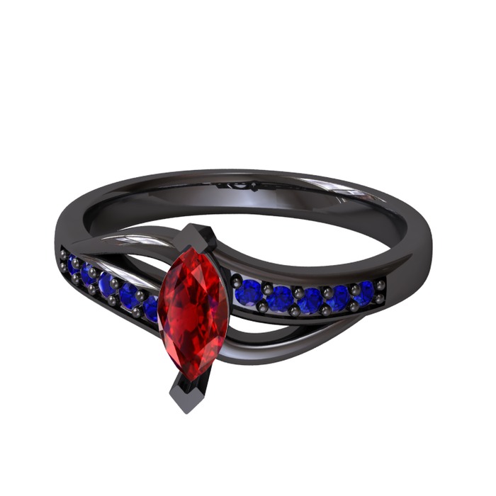 Garnet ve lab safir 925 ayar siyah rodyum kaplama gümüş yüzük