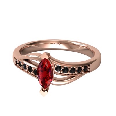 Garnet ve siyah zirkon 925 ayar rose altın kaplama gümüş yüzük