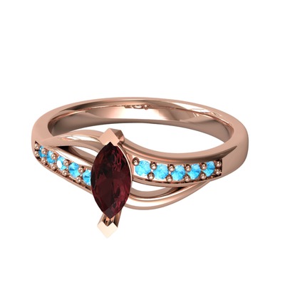 Kök yakut ve akuamarin 8 ayar rose altın yüzük