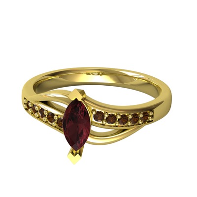 Kök yakut ve dumanlı kuvars 18 ayar altın yüzük