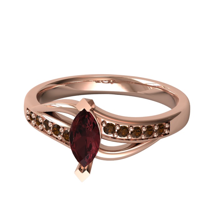 Kök yakut ve dumanlı kuvars 18 ayar rose altın yüzük